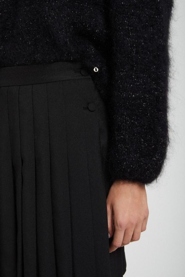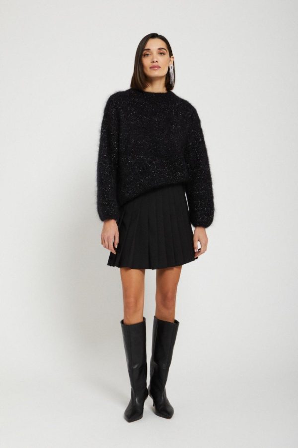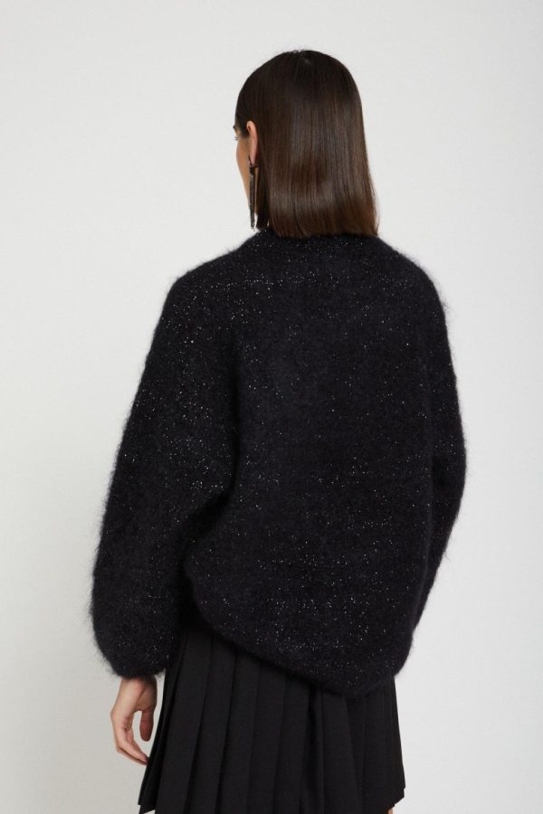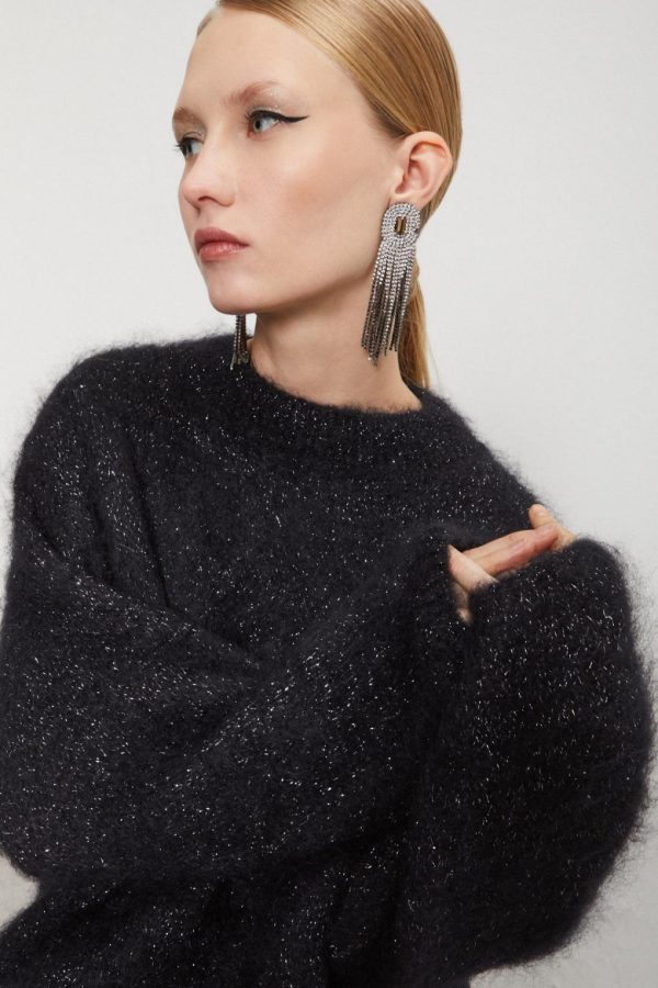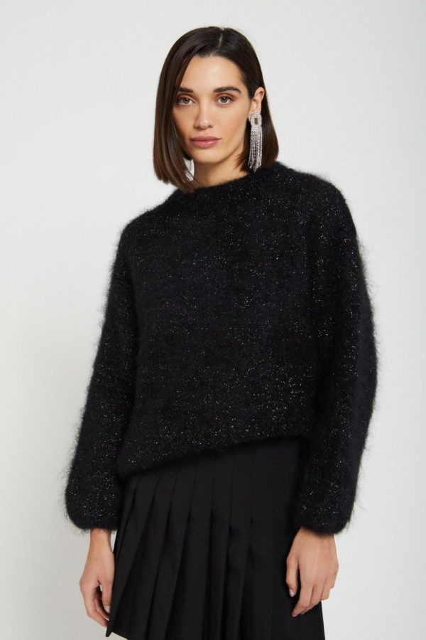 Mohair blend fluffy jumper with lurex and rounded neck.