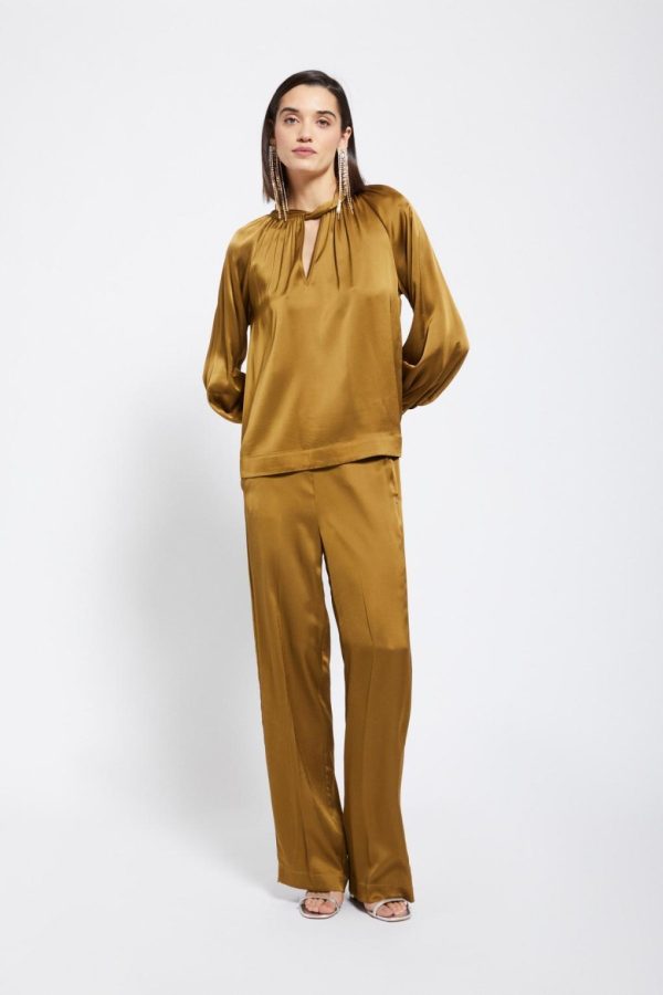 Pure viscose fluid blouse with pleats and knot.