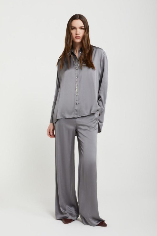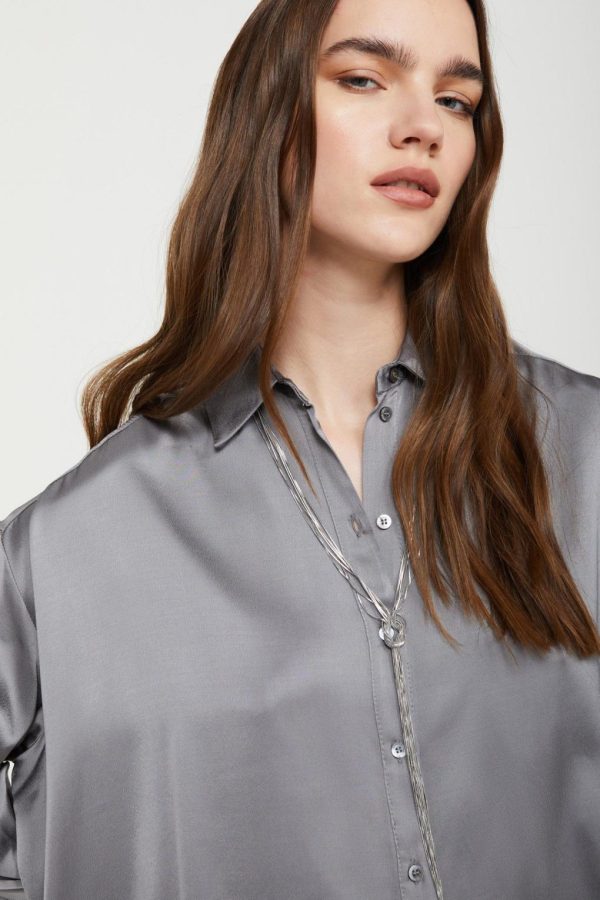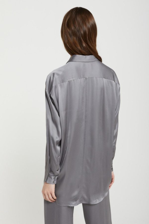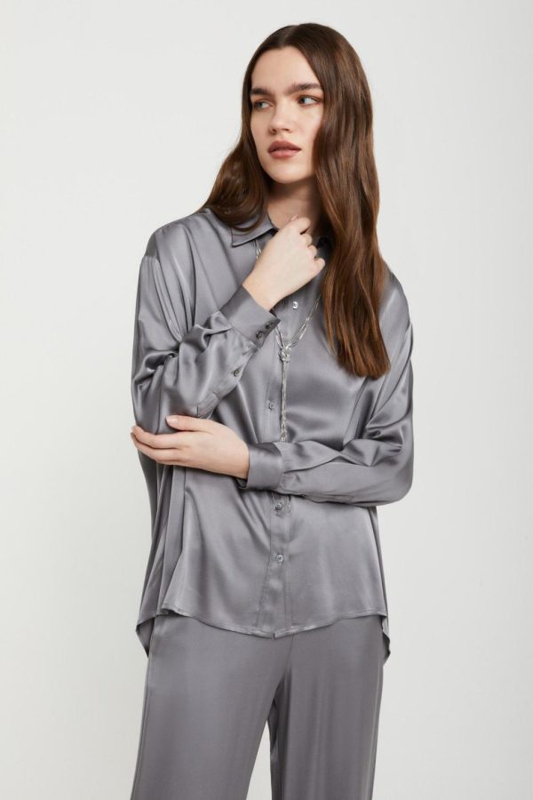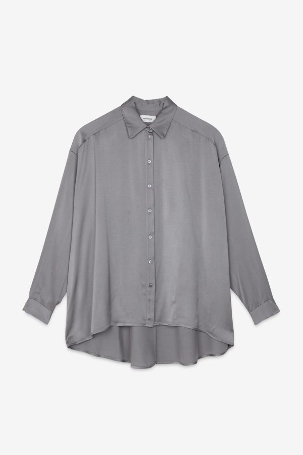 Pure viscose fluid shirt with curved hem.