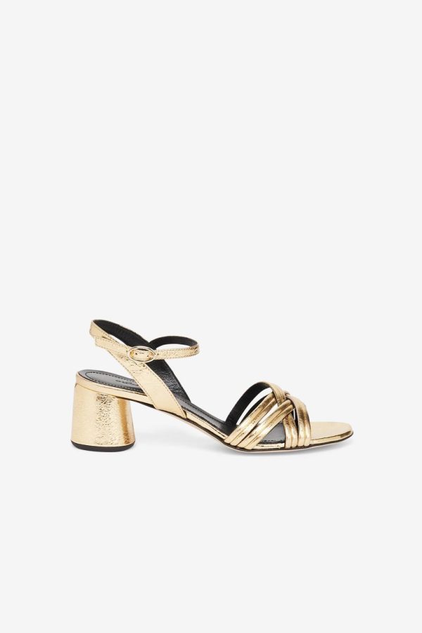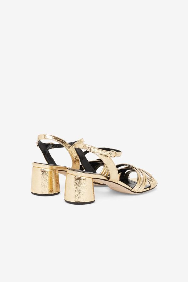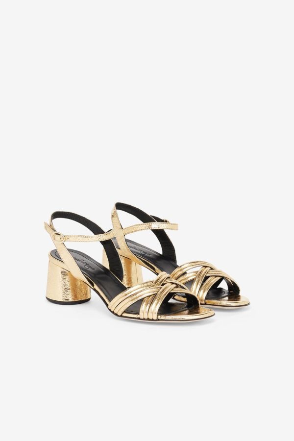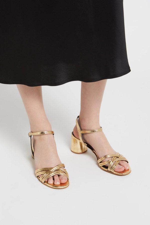 100% Leather woven sandals with medium and square heel.
