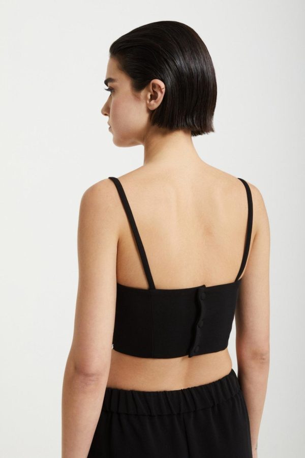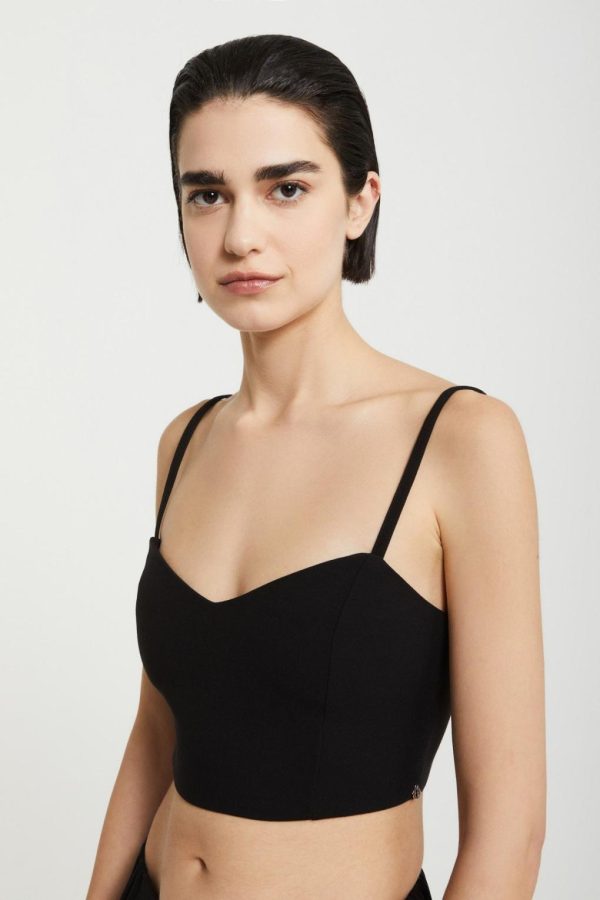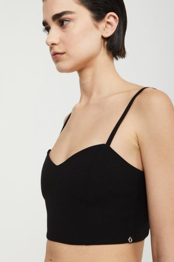 Solid top with sweetheart neckline.